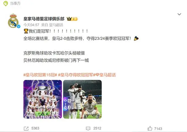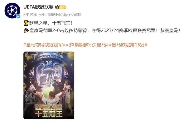 综合央视网、欧冠联赛官方微博、皇家马德里足球俱乐部官方微博、扬子晚报等