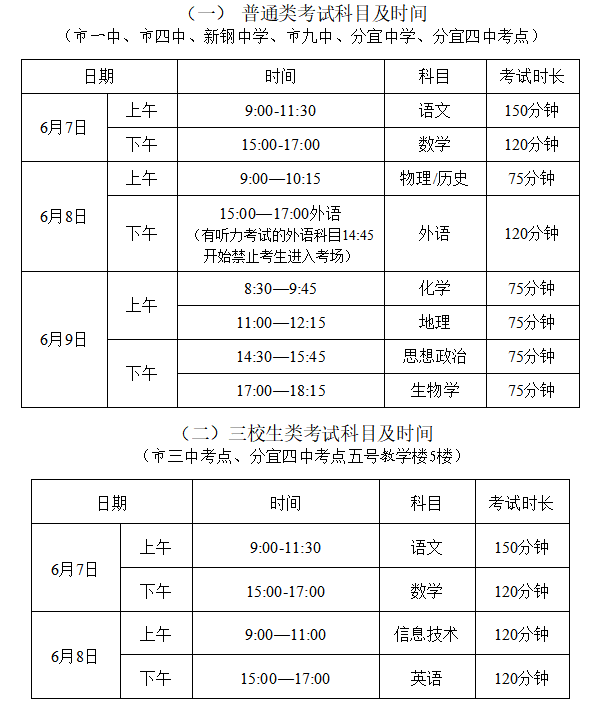 2. 6月7日、8日、9日为考试期间实行交通管制,具体为:①6月7日上午8:00-12:00、下午14:00-17:30。②6月8日上午8:00-10:45、下午14:00-17:30。③6月9日上午7:30-12:45、下午13:30-18:45。