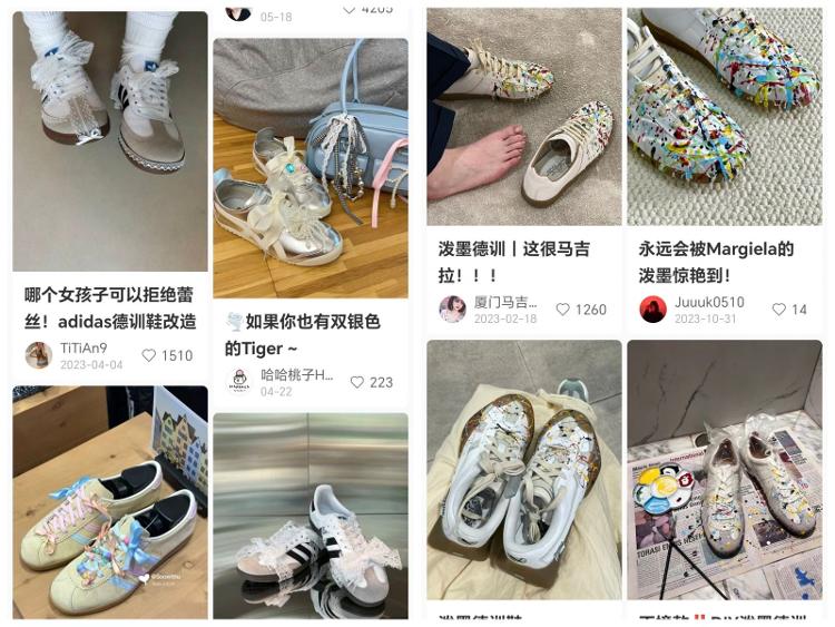 如今,在德训鞋热门品牌中,既有Maison Margiela、Miu Miu等高端品牌,adidas、PUMA等运动品牌,帕拉丁等潮牌,也有接吻猫、回力等国货品牌。对应的产品价格,从一百元至上千元不等。