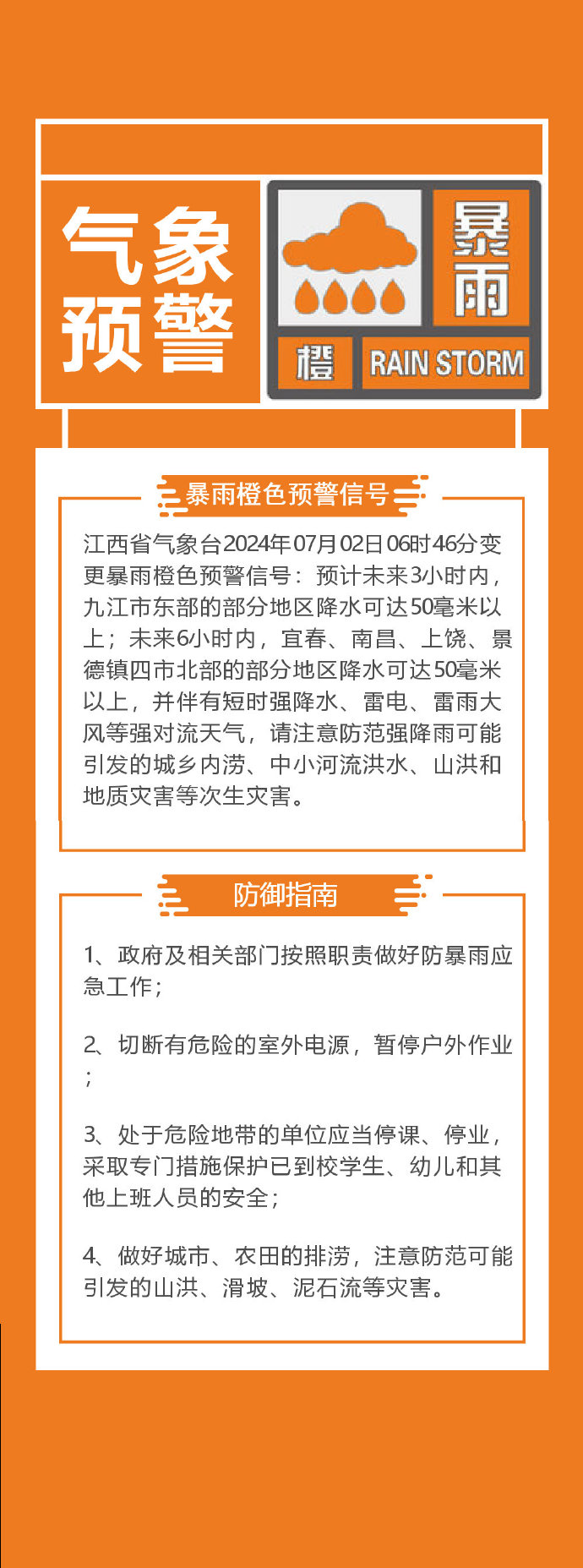 变更暴雨橙色预警