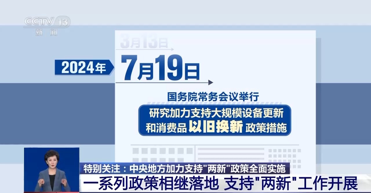 7月19日,国务院常务会议研究加力支持大规模设备更新和消费品以旧换新政策措施。