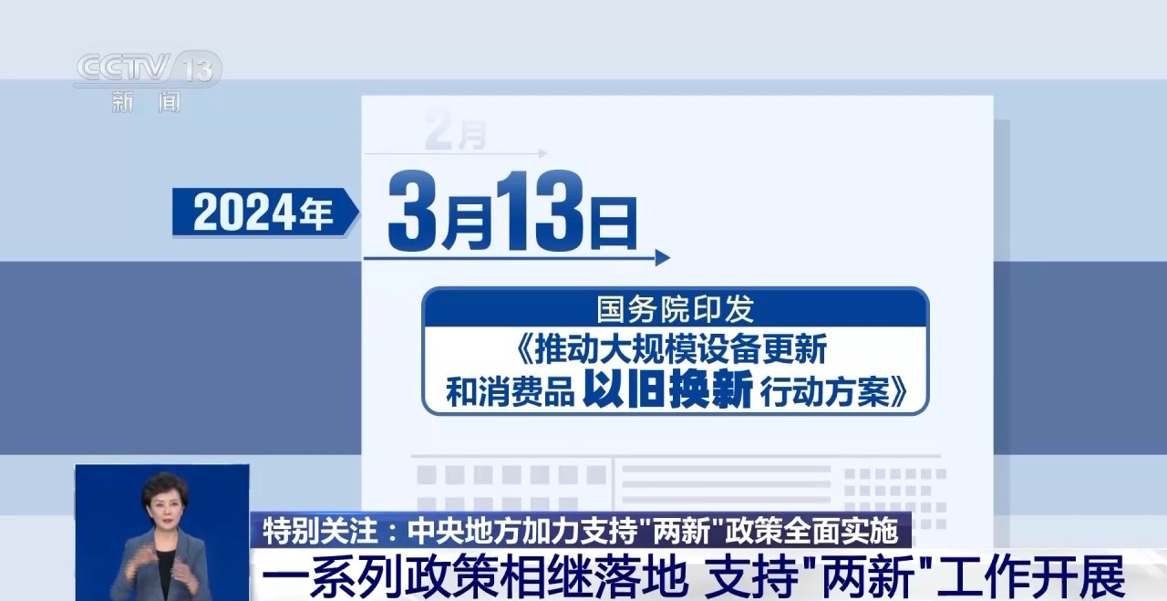 3月13日,国务院印发《推动大规模设备更新和消费品以旧换新行动方案》,作出全面部署。