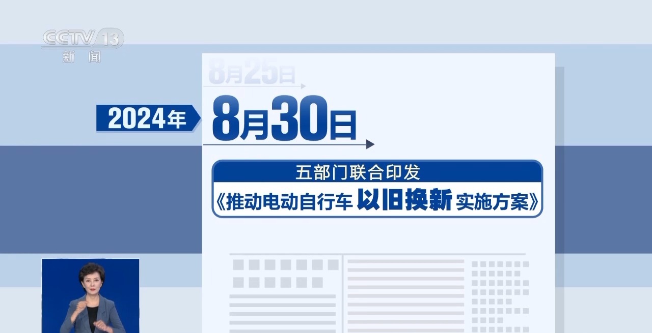 8月30日,五部门联合印发的《推动电动自行车以旧换新实施方案》对外发布。