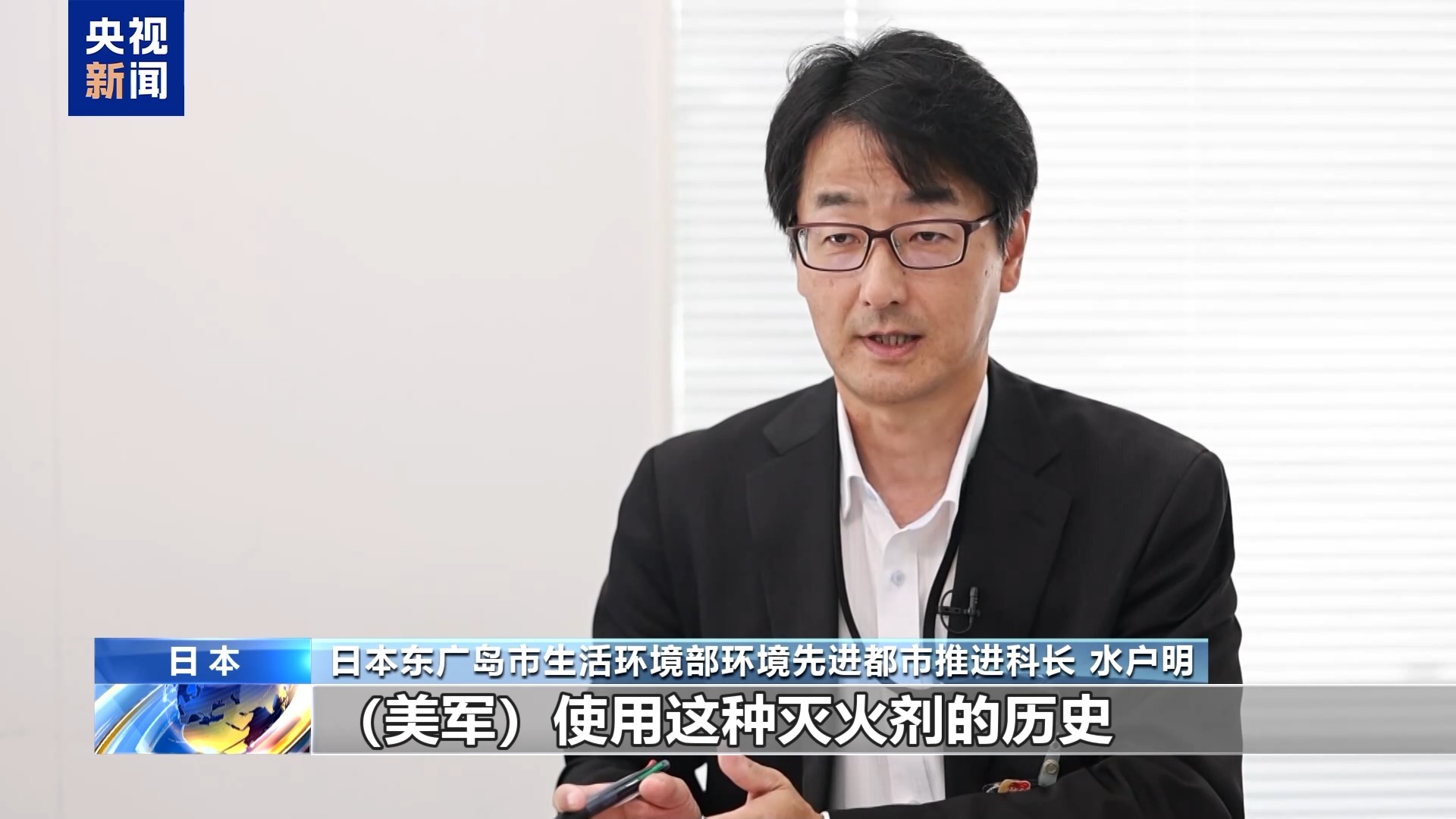 日本东广岛市生活环境部环境先进都市推进科长 水户明:特别是今年9月,日本防卫省防卫局报告了美军使用这种灭火剂的历史。了解到这些事实后,我们认为这可能是水体受污染的原因之一,因此向防卫局提出了进一步调查的请求。我们希望尽快向市民公开这类信息,但目前我们仍处于请求阶段,还没有新的消息。