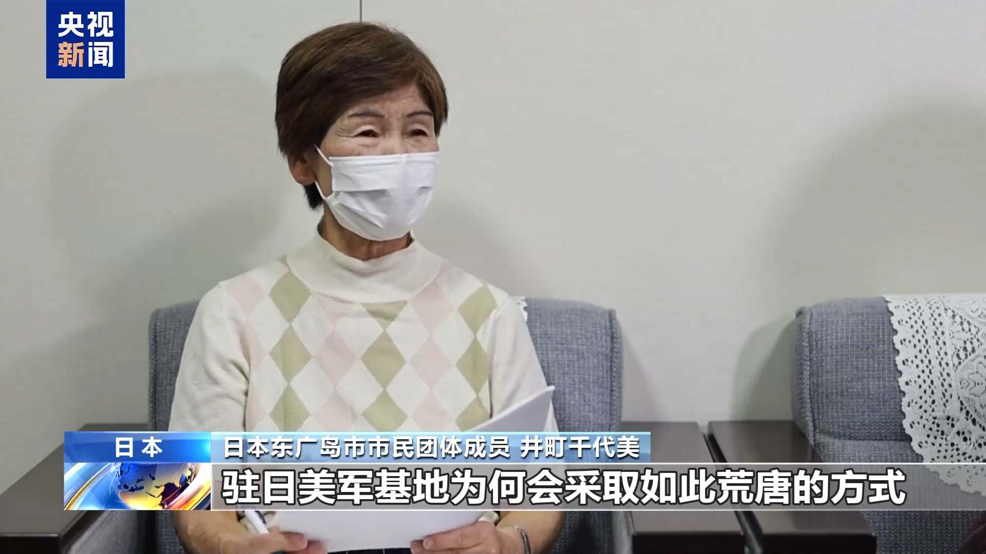 日本东广岛市市民团体成员 井町千代美:驻日美军基地为何会采取如此荒唐的方式?相比美国本土,完全不考虑日本的国土污染,对日本民众的利益也毫不顾及。这种情况本身就令人非常愤怒,必须改变这一现状。