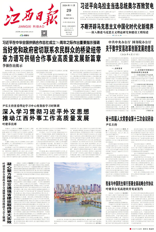 大江网/大江新闻客户端讯 江西日报全媒体记者魏星报道:11月28日,省委书记尹弘主持省委理论学习中心组集体学习。他强调,要深入学习贯彻习近平外交思想,全面落实党的二十届三中全会和中央外事工作会议精神,把握正确方向,强化使命担当,推动江西外事工作高质量发展,为开创中国特色大国外交新局面作出更大贡献。