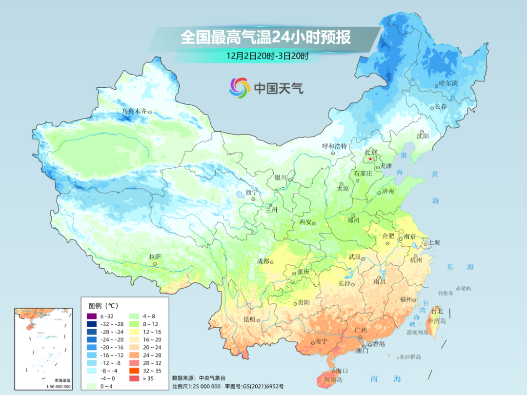 而在南方,今天的气温却是另一番景象。随着暖湿气流增强,南方大部气温今天依然是稳中有升,多地最高气温在20℃以上,局地甚至达到25℃左右,是12月中少见的温暖,暖得不像小雪时节。