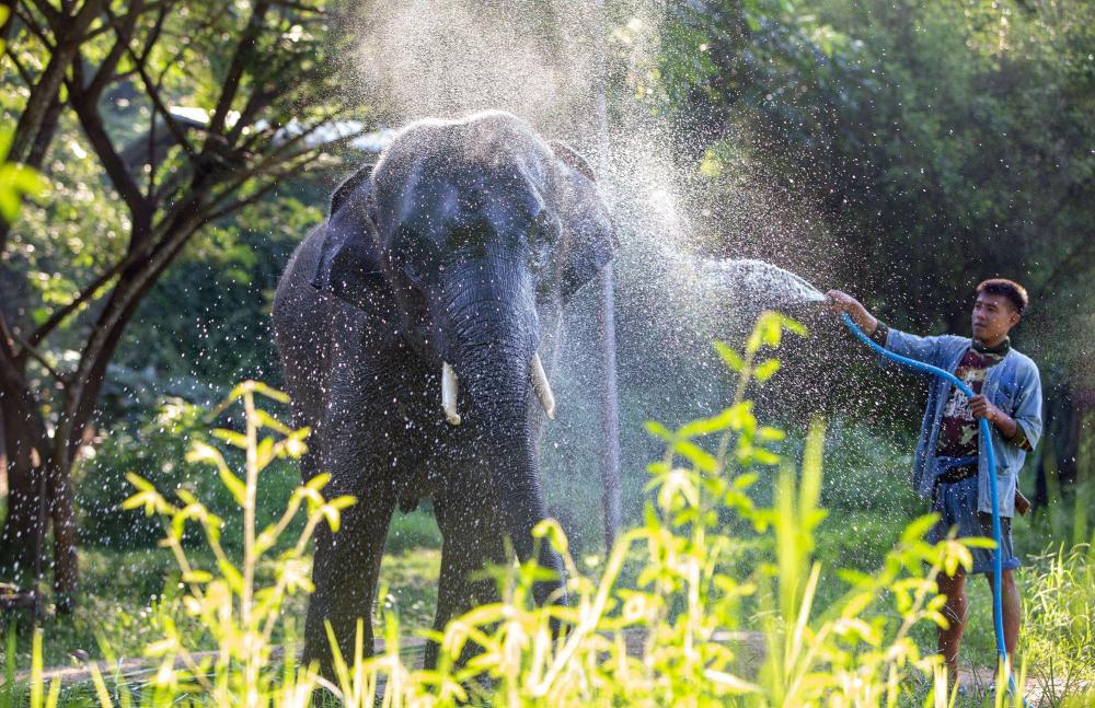 据世界动物保护协会统计,泰国全国旅游景区共有近2800头大象。据了解,在泰国多个大象护理中心、国家公园等地,给大象洗澡是热门旅游项目。此外,不少景区也会为游客安排动物表演。