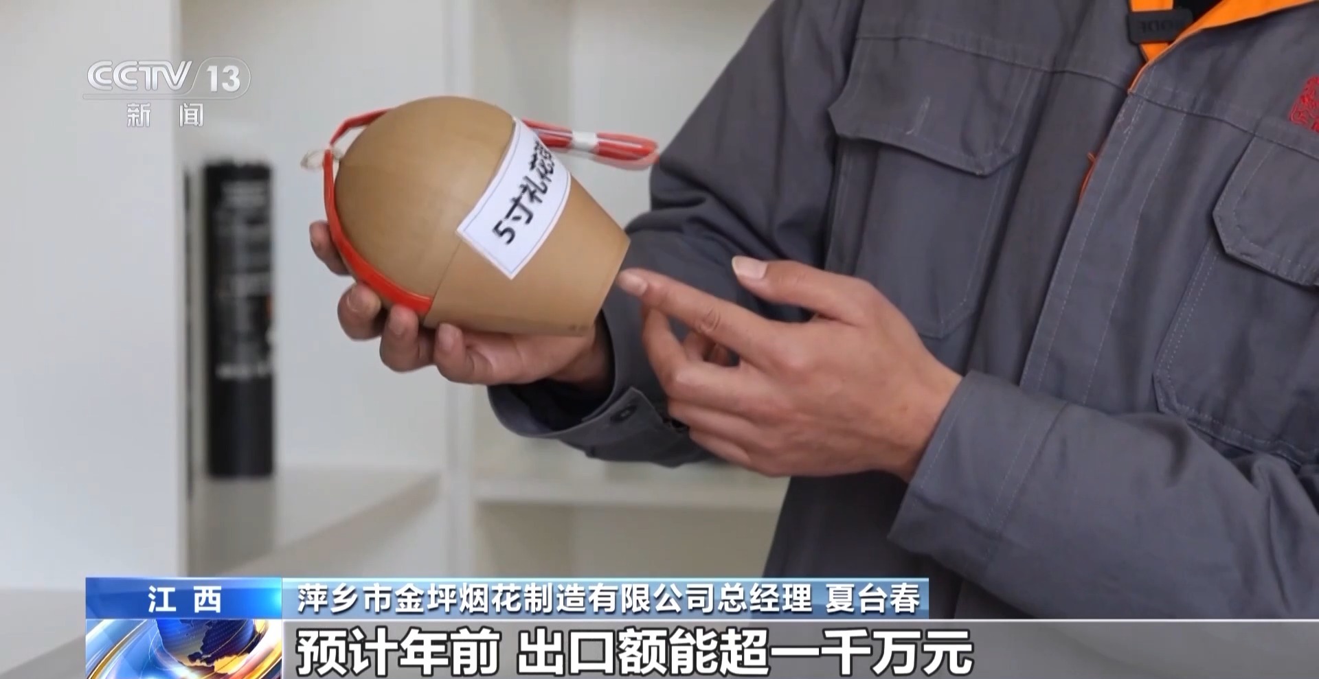 萍乡市金坪烟花制造有限公司总经理 夏台春:为了适应国际市场的需求,我们专门设立了产品研发中心,像2024年就有300多个新产品投放市场。