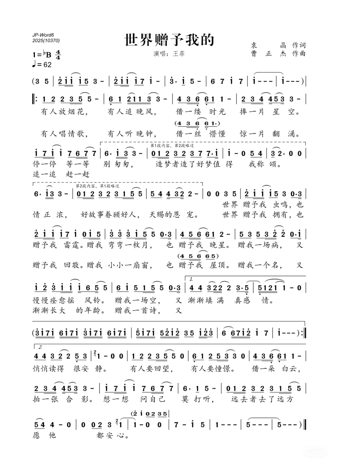 曲谱由网友整理 创作者提供