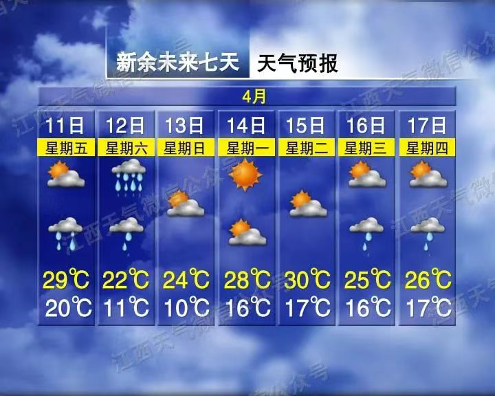赣南南部中雨或雷雨转阴天多云;全省其他地区多云转晴。