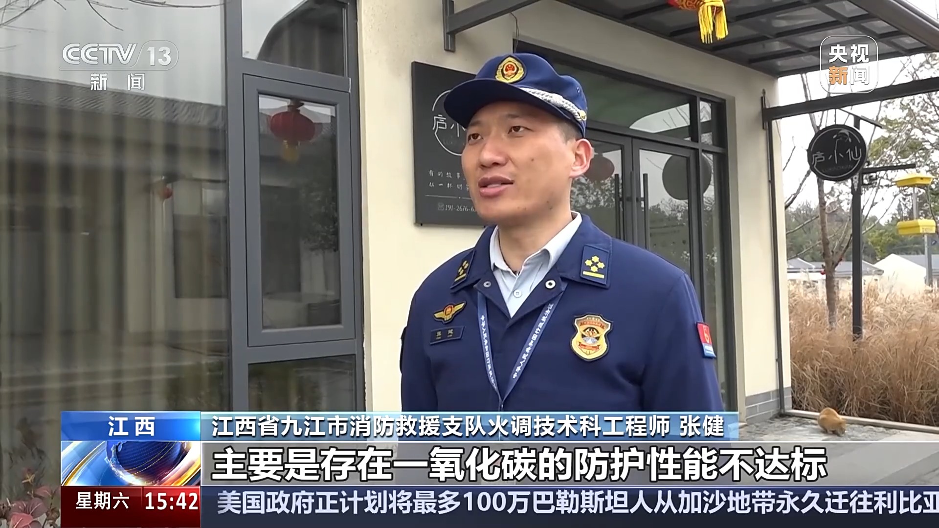 江西省九江市消防救援支队火调技术科工程师 张健:这个过滤式消防自救呼吸器不合格主要是存在一氧化碳的防护性能不达标,一氧化碳的防护性能是过滤式消防自救呼吸器最重要的一项性能指标,它能够起到在火灾中过滤有毒有害的烟气和颗粒的作用。
