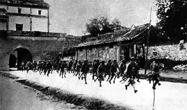 驻守宛平城的中国军队奔赴卢沟桥抵抗日军