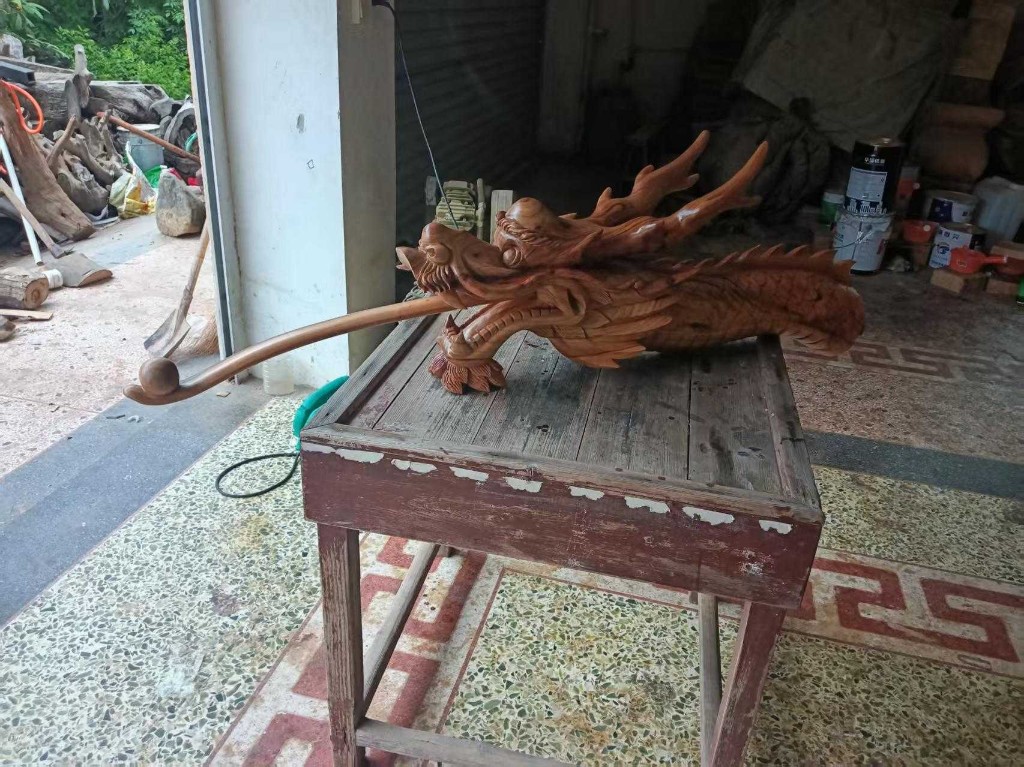 王亮伏在香樟木前的身影,与父亲年轻时磨刀的场景悄然重叠,将根雕艺术融入龙舟文化:阴干的香樟木经他刻刀游走,龙须飞扬、怒目圆睁的龙头破木而出,龙鳞上0.2毫米的精微起伏,让每一片鳞片都蕴含着破浪之力。更特别的是,他将传统龙纹与现代审美结合,推出“网红款”定制龙头——有的龙头缀以鎏金纹饰,有的融入卡通元素,让古老龙舟焕发出年轻活力。