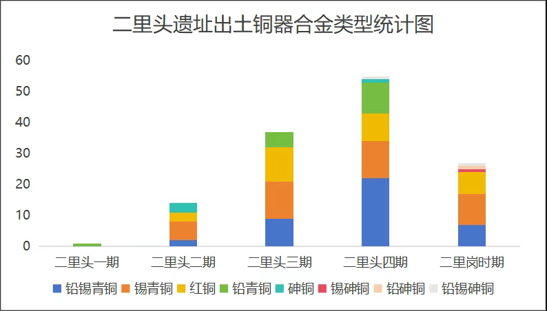 二里头遗址出土不同分期合金类型统计图(中国社科院供图)