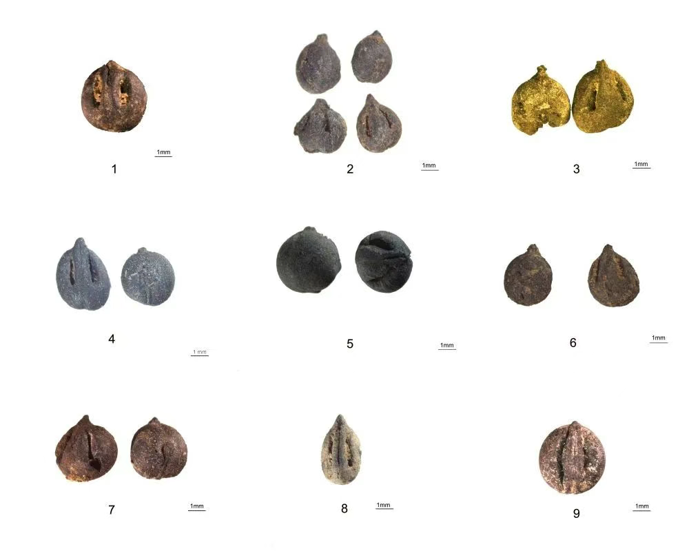 新石器时代晚、末期和青铜时代早期考古出土葡萄属种子遗存(中国社科院供图)