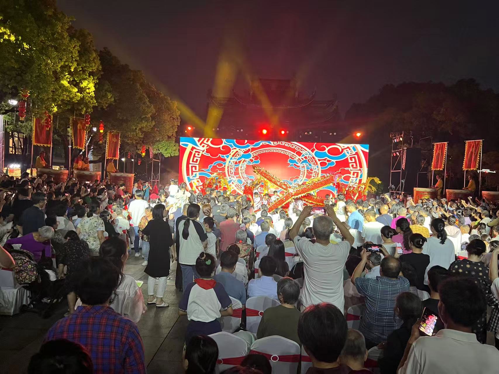 大江网/大江新闻客户端讯 江西日报全媒体记者徐立鸣报道:唢呐嘹亮,锣鼓铿锵。5月30日晚,伴随着非遗表演《彩龙飞舞鼓呐欢》欢快的节奏,“爱我英雄城”城市讲者文化活动暨“我们的节日·端午”青云谱区专场惠民演出在南昌市青云谱区八大山人梅湖景区古戏台开幕,吸引千余名群众围观。
