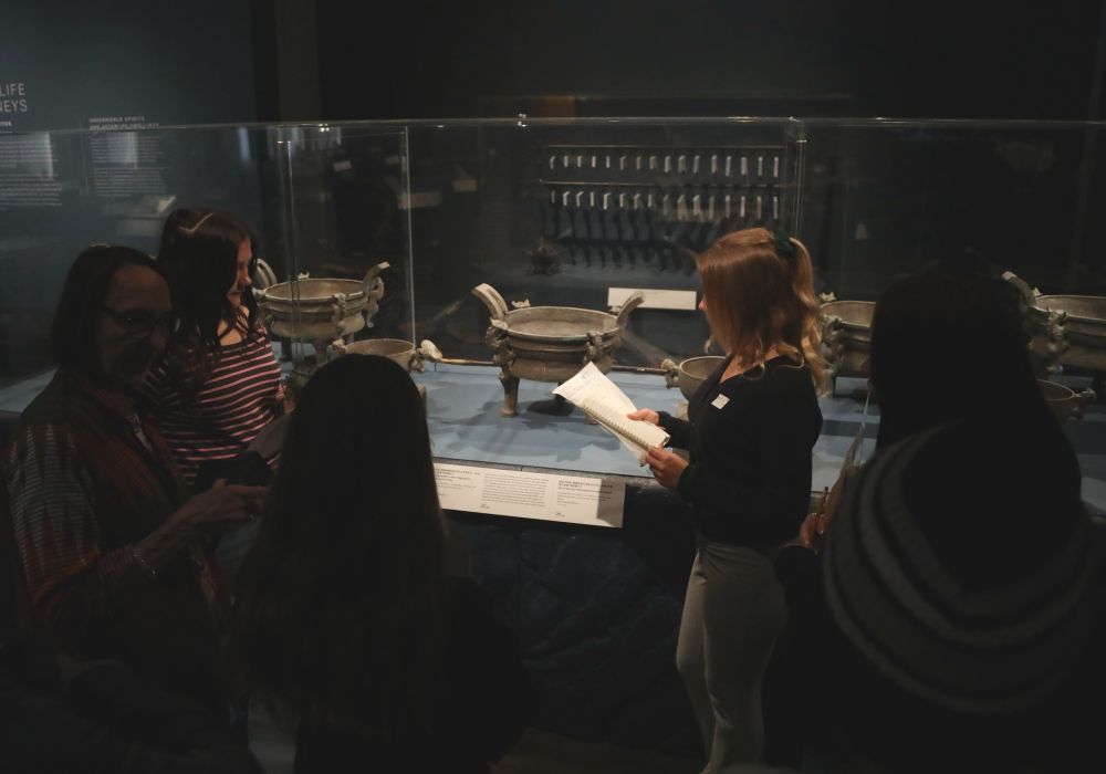 2024年4月,美国旧金山亚洲艺术博物馆“凤凰故国:青铜时代曾楚艺术展”现场,一群美国学生在不同展柜前仔细记录、轻声交谈。