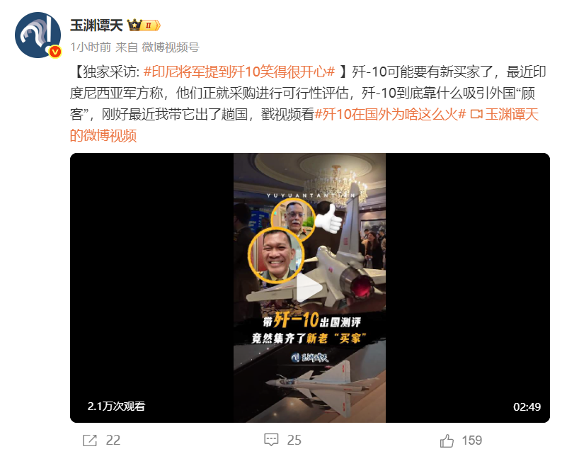 提到歼-10,印尼将军笑得很开心