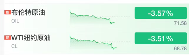 油价与金价双双下跌。WTI原油期货下跌逾3%,至每桶70.47美元,此前在隔夜交易中一度突破77美元。