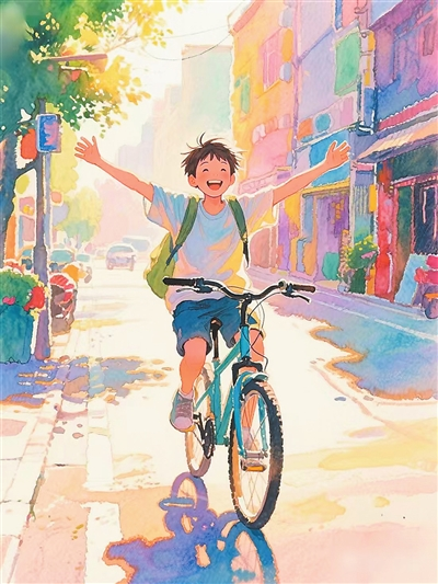 远远看到一个背双肩包的少年,骑着自行车从对面的马路驶过。刚过正午,路人很少。少年双手插兜,目视前方。大撒把,不很快,挺松弛。