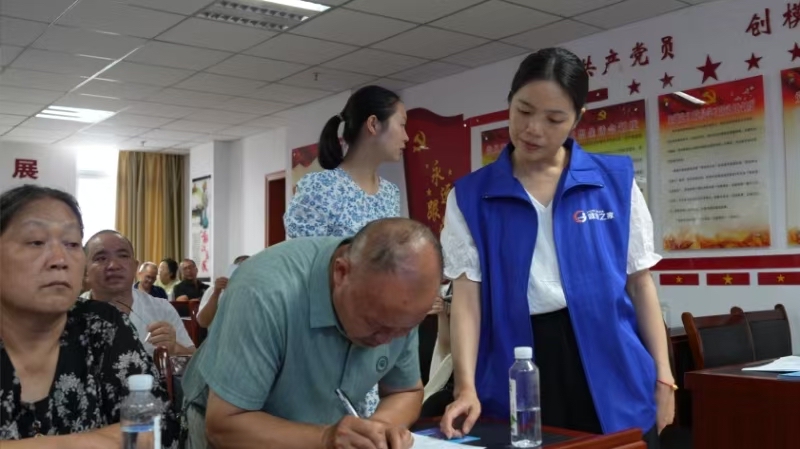 袁州区就业困难人员低成本创业扶持工作启动仪式上,工作人员指导创业者填写材料。袁州区就业之家供图