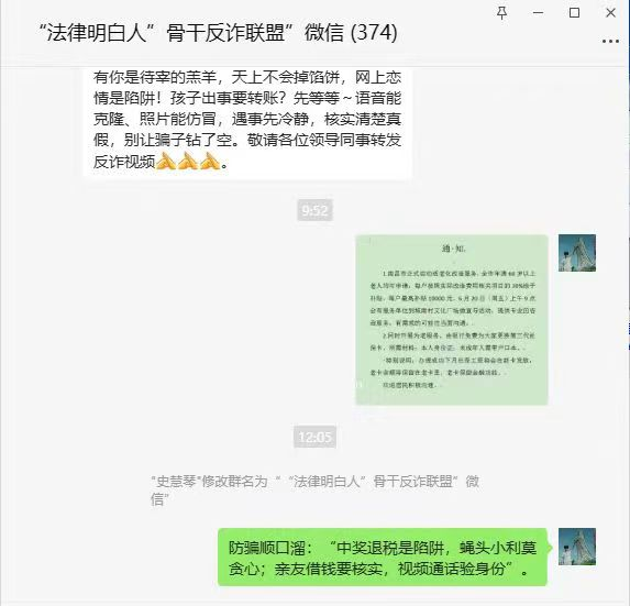 青云谱区“法律明白人”建立“反诈宣传联盟”微信群截图