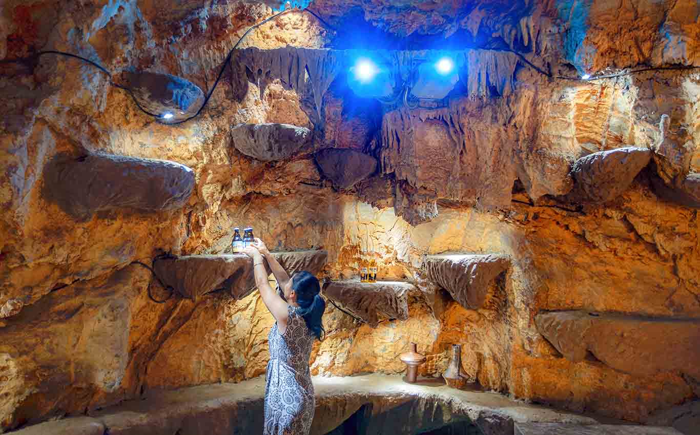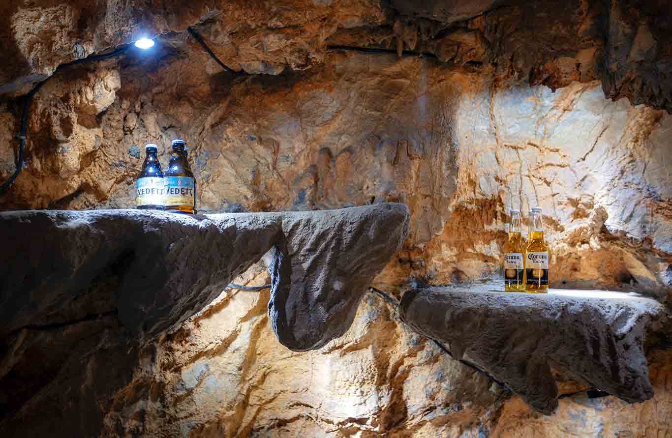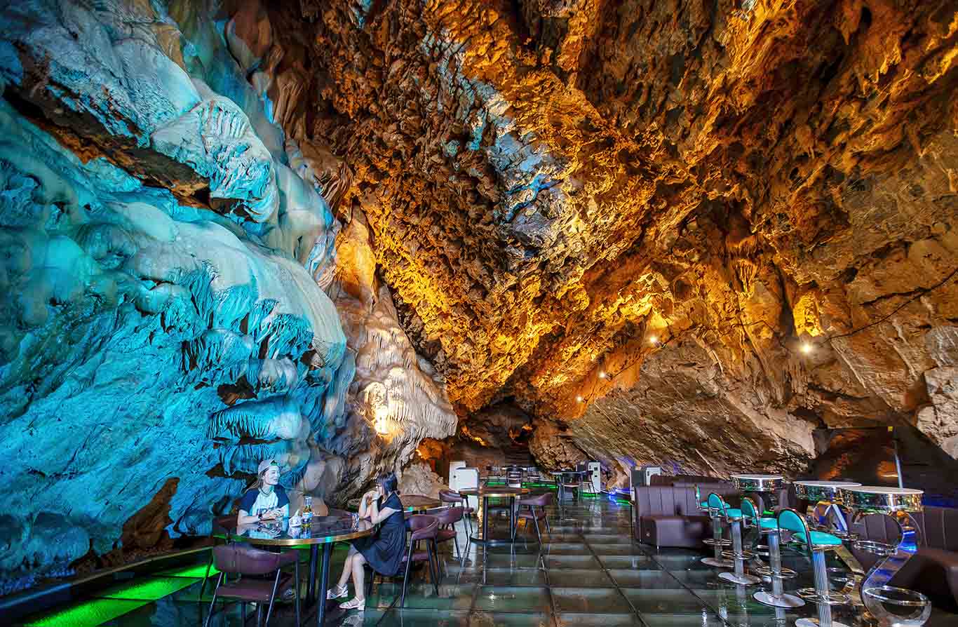 这酒吧藏在天然溶洞里,钟乳石是现成的“装修摆件”,灯光一打,石笋、石柱、石幔都有了别样韵味。岩壁自带“制冷功能”,渗出来的凉气比空调风还舒服,堪称“天然空调房”。在这里,点杯冰饮往椅子上一靠,浑身的暑气立马散去。白天能来躲躲太阳聊聊天,晚上还有轻音表演,惬意又凉爽。