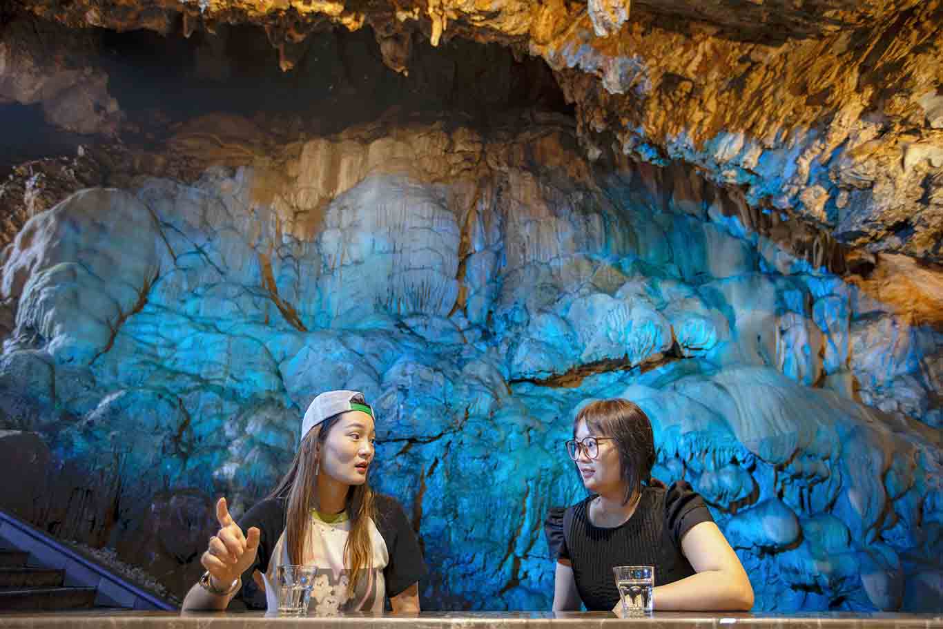 ▲溶洞酒吧成了避暑休闲的好去处。摄影|江西日报全媒体记者徐铮