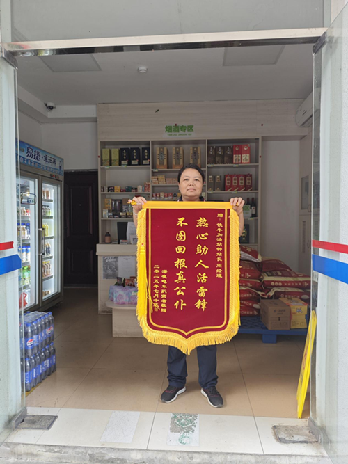 忙完之后,钟站长一边带着疑虑打开包裹,一边心里暗暗嘀咕道:“平时快递都是邮寄到家啊,怎么今天在加油站也有快递呢?”打开一看,里面竟是一面锦旗,上面写着“热心助人活雷锋,不图回报真公仆”字样,再看锦旗的落款,钟站长顿时疑虑全消,不禁回忆起那天的事情来。