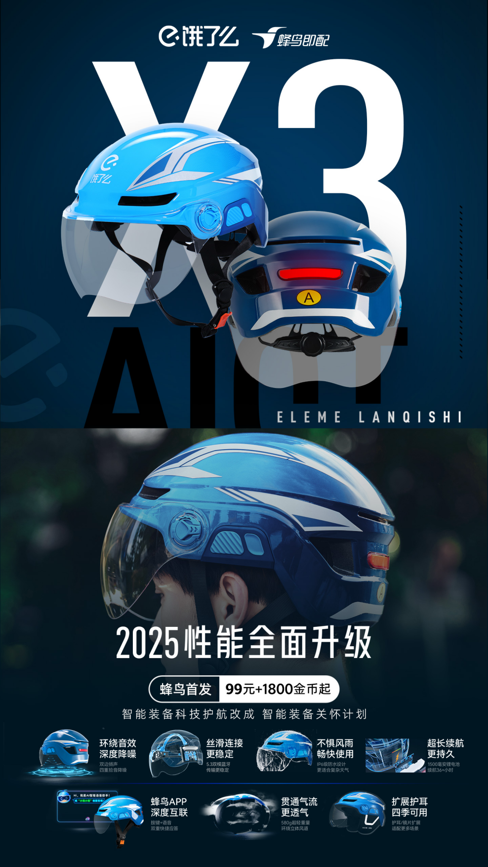 安全提升方面,饿了么智能头盔X3也尤为亮眼。