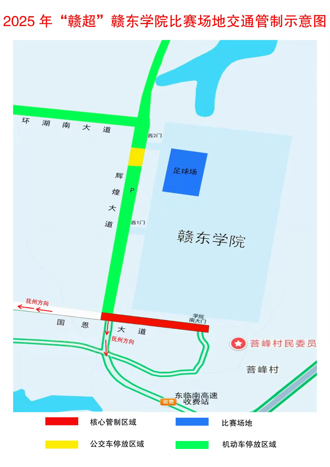抚州市足球队将于本周日(8月3日)主场迎战吉安市足球队。为确保赛事期间道路交通安全畅通有序,将对东临新区赣东学院赛场周边实施临时交通管制。