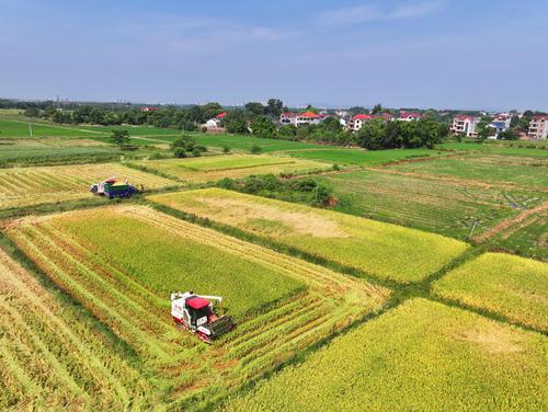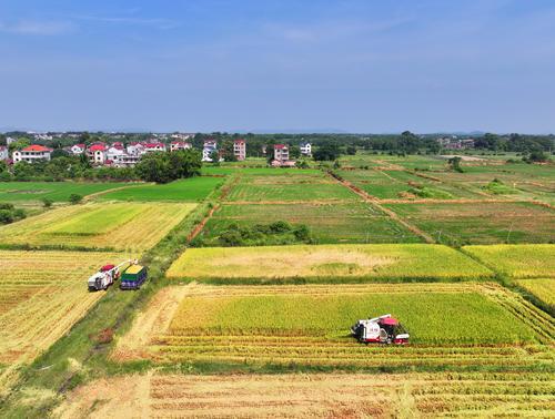 8月12日,泰和县沿溪镇仓岭村再生稻种植区,农民驾驶收割机正在抢收头茬再生稻。特约通讯员