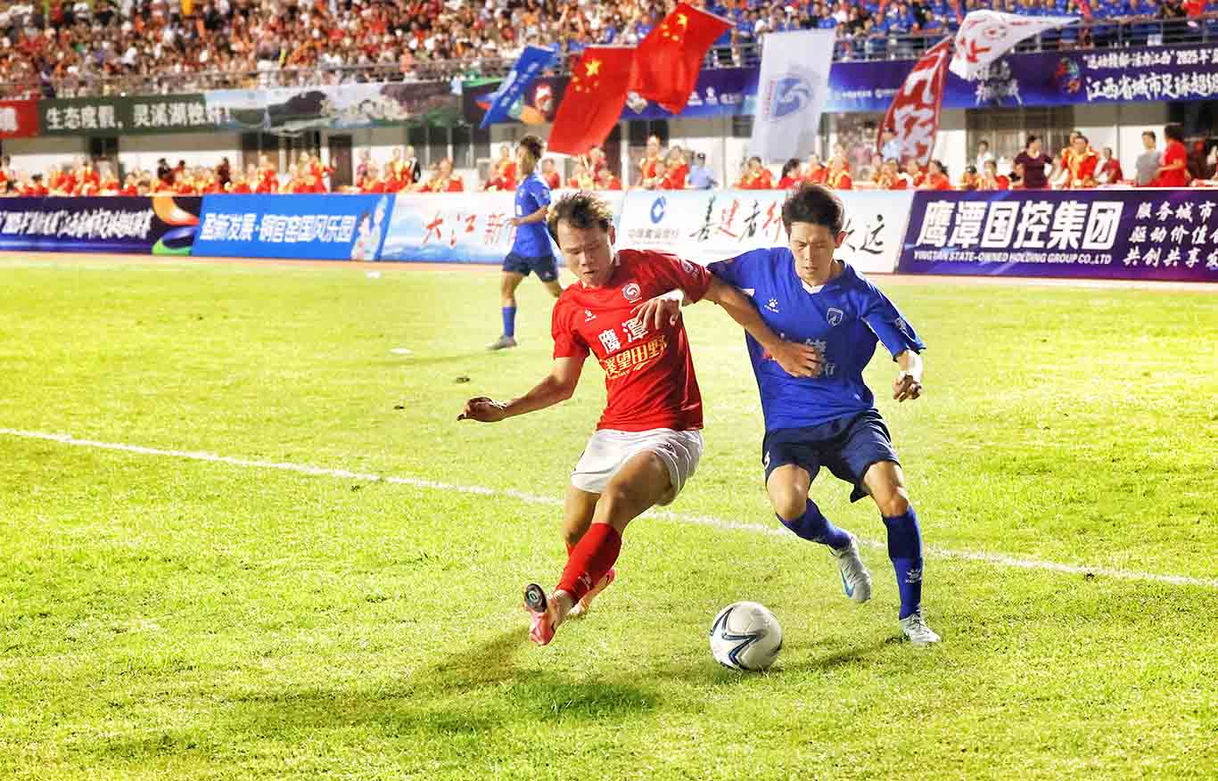 大江网/大江新闻客户端讯 江西日报全媒体记者徐铮报道:8月16日晚,2025年江西省城市足球超级联赛(赣超)第六轮比赛在鹰潭市体育中心体育场激烈上演,上饶队客场挑战鹰潭队。