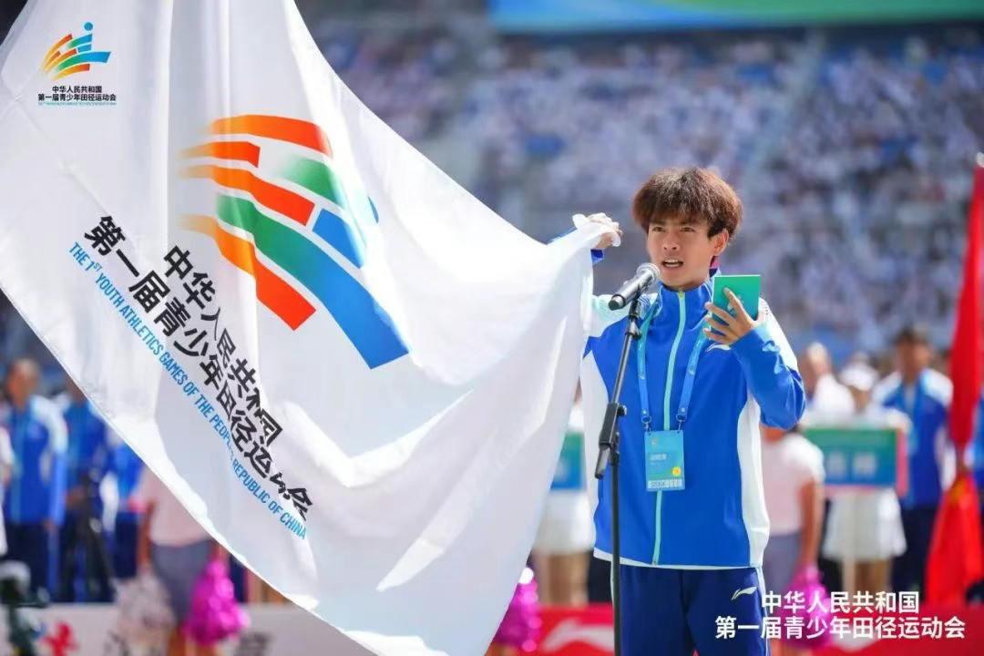 尹子豪与湖口中学田径队的缘分始于初中,作为校队主力,他在教练的指导下系统训练3年,打下坚实根基,并代表学校在2024年九江市第十四届运动会青少部田径比赛中获得400米、800米和1500米三项冠军。2024年升入高中后,他随教练接受专业化训练并代表四川队参赛。在此次首届全国青少年田径运动会上,尹子豪作为运动员代表宣誓。