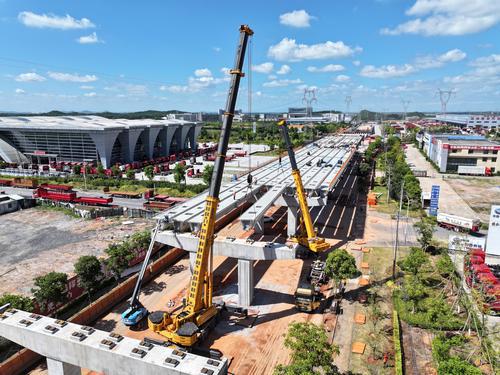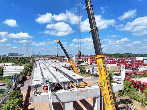 8月19日,在G320国道高安境内改线项目工程(森泽大道高架互通)建设现场,施工人员抢抓施工“黄金期”,进行预制箱梁架设。该项目作为高安市完善交通路网、提升城市通行能力的关键工程,建成后将极大缓解G320国道的交通压力,实现过境交通与城市交通的有效分离,对优化城市空间布局、促进区域经济社会发展具有重要战略意义。本报全媒体记者吴文兵 摄