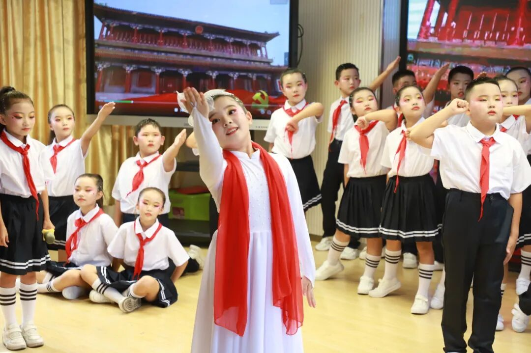 四(9)中队的《我喜欢红色》,是一次对“红色”的浪漫解码。在他们的诵读里,红色是国旗的鲜艳,是红领巾的光荣,是革命先烈热血的温度,更是新时代少年信仰的颜色。少年们用纯净的声音,把对红色的热爱与尊崇,唱成了一首动人的歌。