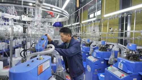 走进山下村袜业厂,没有大型工厂的轰鸣喧嚣,却藏着不少家庭的“小确幸”。“我们不只是提供岗位,更在营造家的氛围。”车间负责人叶锋介绍,这种模式既破解了留守妇女和有劳动力的老人就业难的困境,又拉近了村民间的情感距离,让幸福感在劳作中悄然升温。“以前我留在村里,除了带娃、种菜,没啥收入。年纪大了进厂没人要,走远了又放不下家里。”村民曹柏秀一边娴熟地翻着袜子,一边感慨,“现在好了,车间把活儿送到了村里,计件算钱、时间灵活,挣钱顾家两不耽误。”