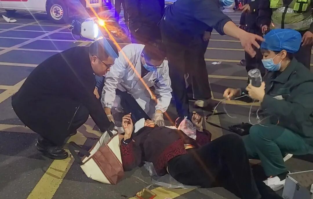 蹲身、俯身、查体,一系列动作行云流水、专业干练。周曾仔细观察伤者的意识状态,轻唤询问:“小伙子,能听到我说话吗?”“老人家,手脚能不能动?” 一声声温和却坚定的话语,试图唤醒伤者的感知,也安抚着周围人的慌乱。他精准判断伤者的呼吸、脉搏等生命体征,确认二人生命体征平稳、神志尚清后,悬着的心稍稍放下,却立刻投入到紧张的后续处置中。