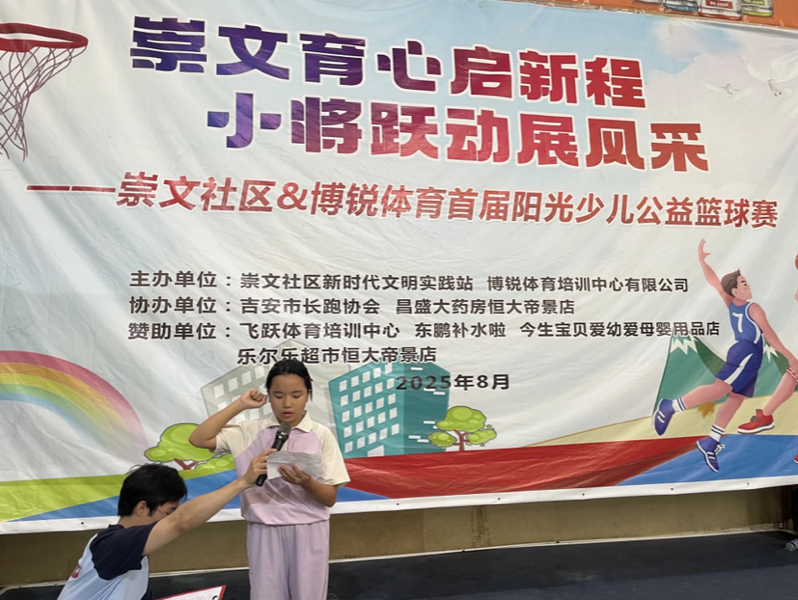 “我们希望以篮球为纽带,搭建起孩子成长、邻里交流的双平台,让孩子们在运动中强健体魄、学会协作,也让家长们在互动中熟悉邻里、凝聚社区合力。”崇文社区党支部书记廖小霞表示,此次活动由社区社会组织--吉安市长跑协会志愿者全程护航,从现场秩序维护到分组引导,从后勤保障到物资整理,志愿红的身影活跃在各个环节。