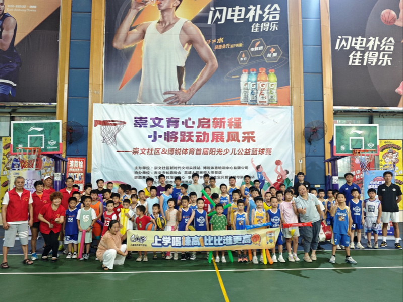 运球、传球、投篮……8月17日上午,恒大帝景运动中心篮球场上活力涌动,孩子们的欢笑声与欢呼声此起彼伏。由崇文社区联合博锐体育共同筹备的“崇文育心启新程 小将跃动展风采”首届阳光少儿公益篮球赛热闹开赛,辖区80余名5-12岁少年儿童分组登场,在奔跑与跳跃中释放活力,在邻里互动中收获成长。