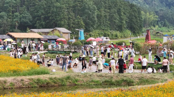 国庆中秋假期,新余市渝水区良山镇下保村格桑花海秋日盛放,摸鱼、套鹅等乡村娱乐活动吸引了众多游客到来,大家在田间撒欢,邂逅快乐假期。作为新余乡村旅游的热门打卡地,良山镇下保景区凭借得天独厚的生态环境与丰富多元的游玩项目,成为众多游客周边游的首选。