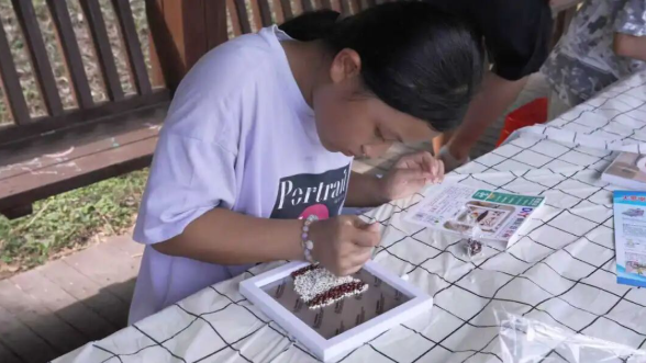 走进下保景区,浓郁的节日氛围扑面而来。在“手工奇遇记”区域,五谷拾光与南瓜彩绘项目吸引了不少亲子家庭驻足参与。孩子们手持胶水与各谷物,在家长的协助下拼贴出五星红旗、小兔子等充满节日元素的图案;一旁的南瓜彩绘区,大小游客拿起画笔,为金黄的南瓜披上“五彩外衣”,一个个创意十足的作品成为假期里独特的纪念。“既能锻炼孩子的动手能力,又能让他们感受自然与劳动的乐趣,这样的活动特别有意义。”带着孩子参与手工制作的游客刘女士说道。