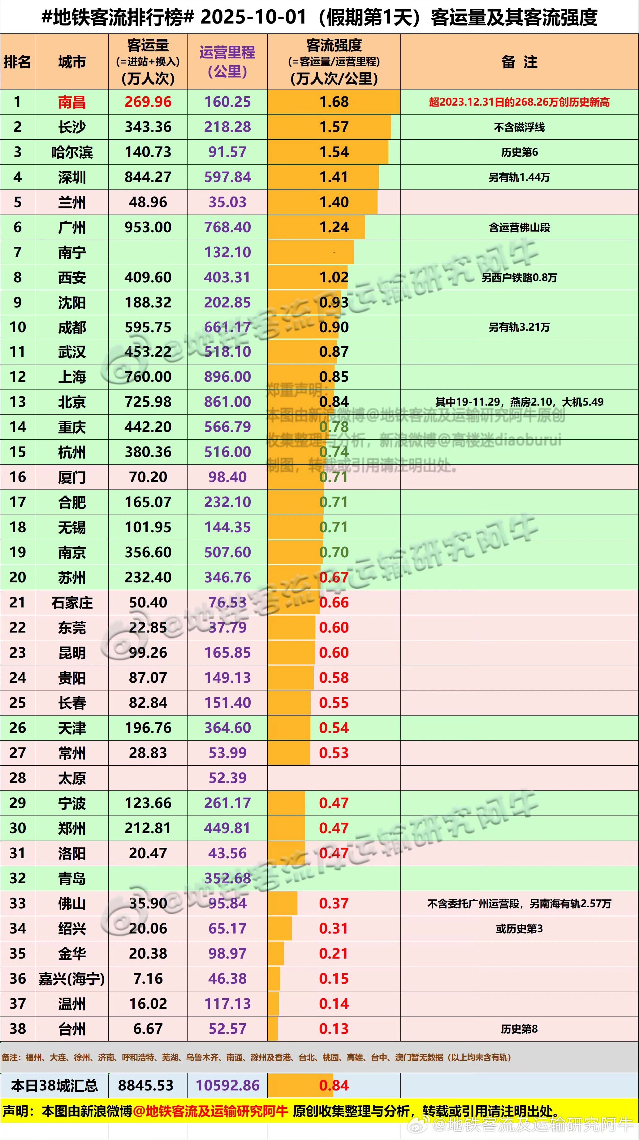“双节”期间,南昌交通系统多项数据创下历史新高,宛如城市的“活力脉搏”强劲跳动。南昌地铁累计运送乘客1504.48万人次,日均客运量约188.06万人次。其中,10月1日客运量达269.96万人次,创历史新高,客流强度位列全国第一。
