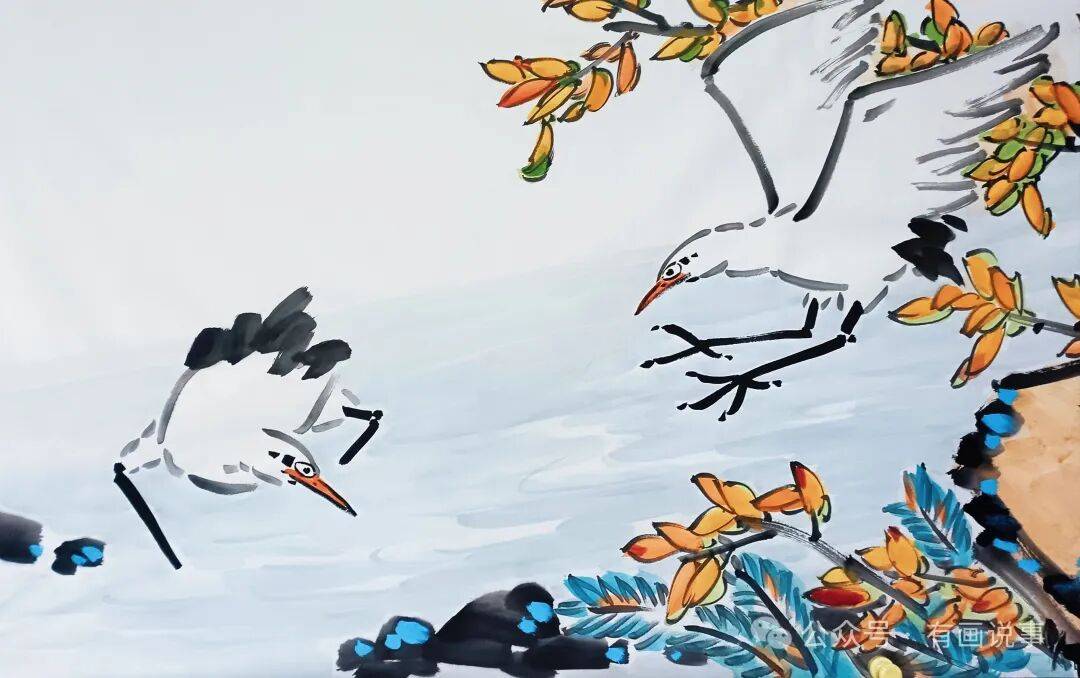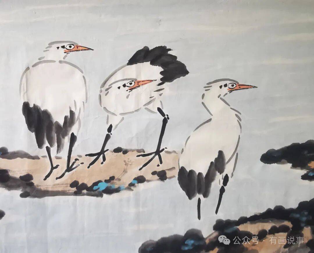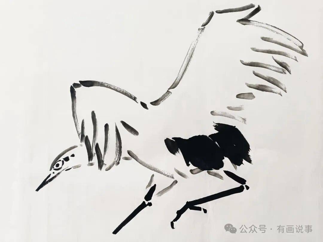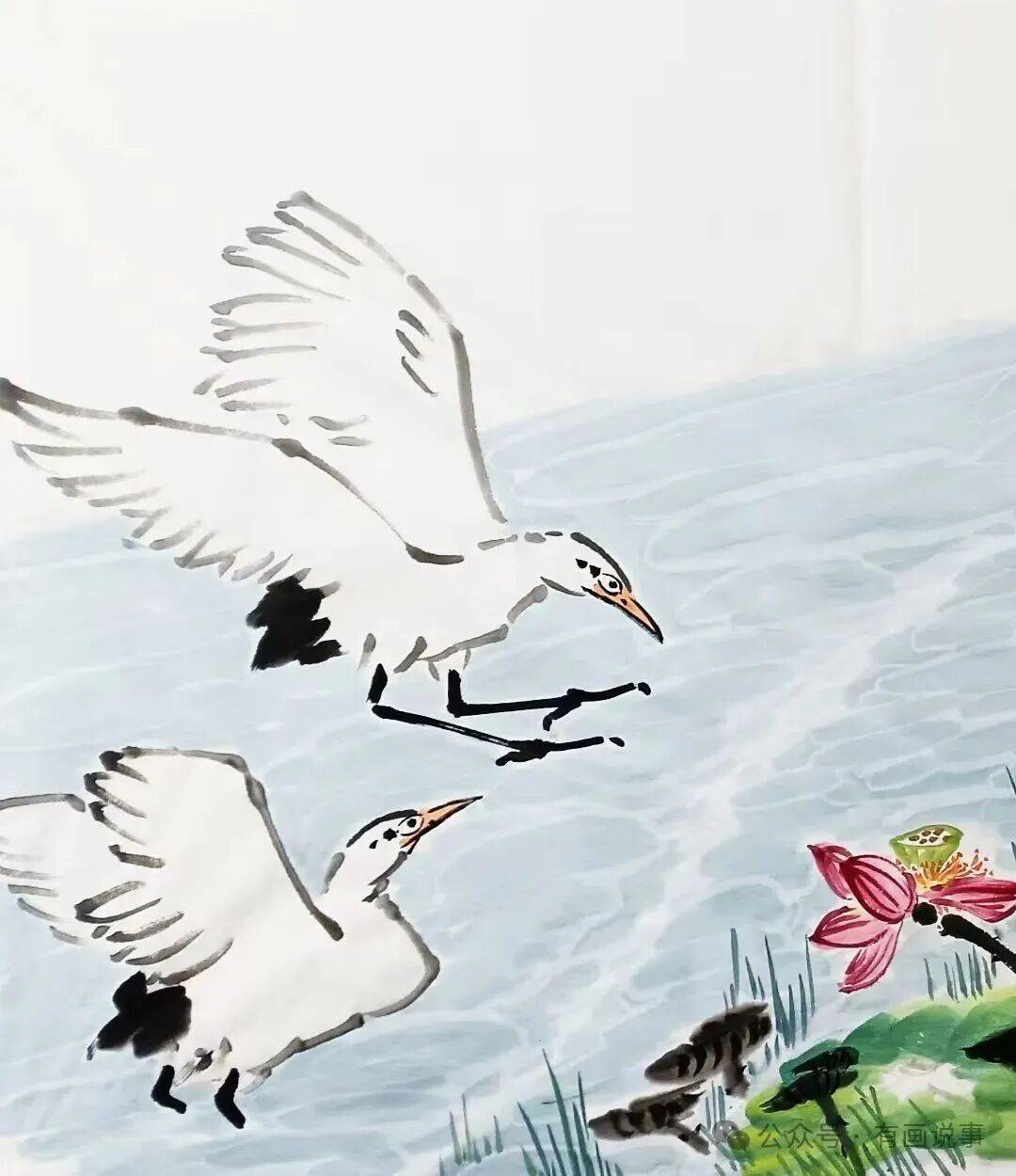 金石为骨:他巧妙地将书法、篆刻中的“金石味”融入造型。勾勒白鹭喙、足及关键羽翼的线条,如“锥画沙”,沉雄老辣,充满力度,赋予其铮铮铁骨。这使得他的白鹭在飘逸中蕴含着不可摧折的刚健,避免了柔媚与浮滑。