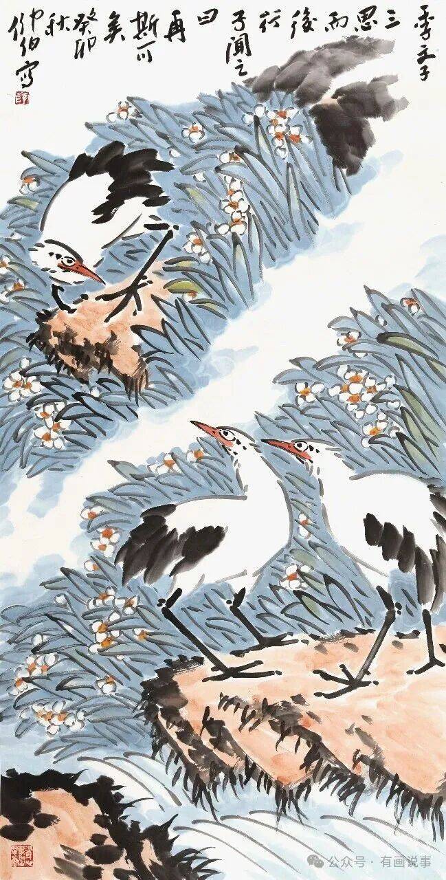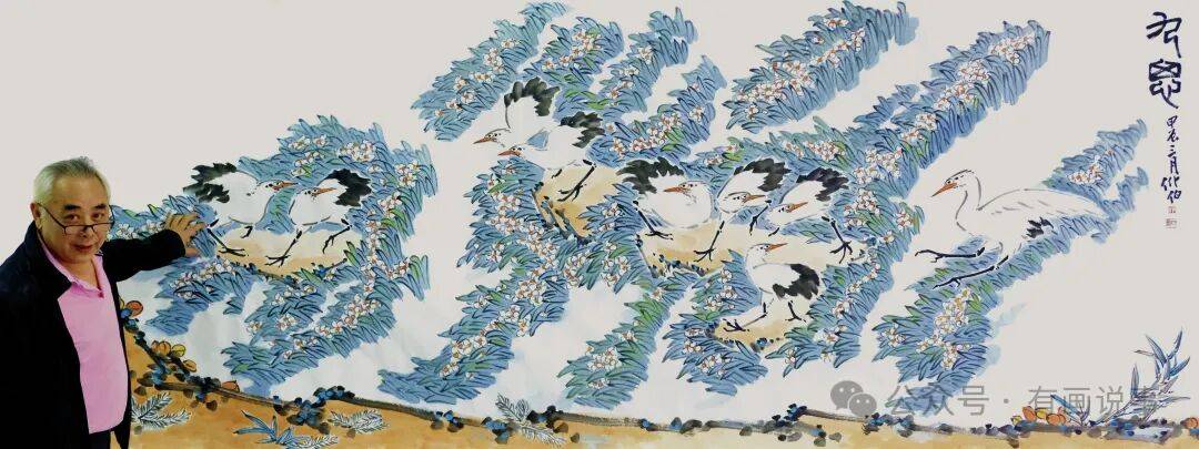 薛晓勇的白鹭,不仅是一个花鸟画题材,而是在观摩一场精神的修行。他通过极具个人风格的笔墨语言,将白鹭塑造成了当代文人精神的完美化身——它立于传统与现代之间,栖于理想与现实之际,以其亘古不变的昂首之姿,为我们在这个喧嚣的时代,守护着最后一片“沧浪”清音,指示着一条通向内心澄明与精神自由的道路。