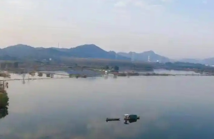 今年雨水少,入冬后水位又退去一些,湖果真是瘦了。远望过去,往日被湖水浸没的滩涂裸露出来,褐色的泥滩上,印着一道道清晰的水位线,记录着湖水渐渐远去的足迹。我走近水边,看见那几丛熟悉的芦苇已换了容颜——顶上的芦花团团爆开,在灰白中透着极淡的银灰色,风过时便软软地起伏,仿佛在低声诉说着季节的变迁。