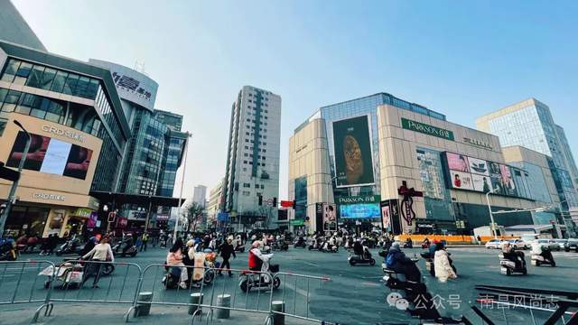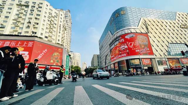 半下昼时分,中山路上沿街店面有的开着,有的关着,车辆单向流动,秩序井然。走到中山路与象山路交汇处,这里人来人往,川流不息。楼宇外墙上巨大的电子屏幕上滚动播放着广告,时尚动,氛围拉满。