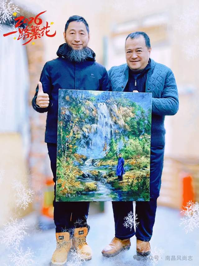 南昌熊明(左)著名油画家、人物肖像画顶流大咖袁青林(右)
