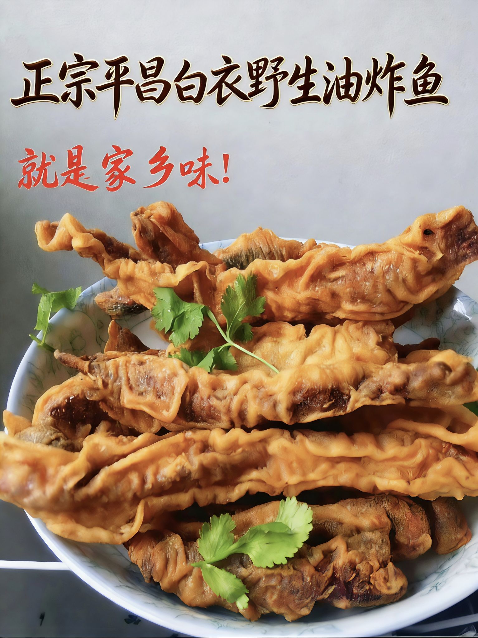 平昌油炸鱼是以河鱼和三合米(籼米、糯米、粳米混合制成的精细米粉)为主料的四川传统特色菜品,属巴中地域名特风味小吃,被纳入巴中非物质文化遗产保护范畴。其成品呈现“三色三层”特质:外层米粉呈琥珀色焦脆层,中层鱼肉保持雪白色嫩滑层,内层鱼骨形成浅金色酥化层。入口时能同时感受米粉的酥香、鱼肉的鲜香和骨质的钙香三重味觉体验。